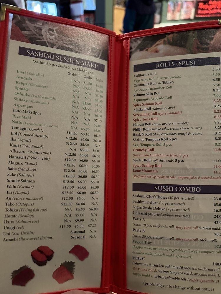 The restaurant's 8 Piece Sushi Rolls offer exciting flavor combinations with options such as the colorful Rainbow Roll and the tropical Mango Tango Roll. For those looking for something smaller, the 6 Piece Rolls, like the classic California Roll and the spicy Screaming Roll, are perfect for sharing or savoring solo.